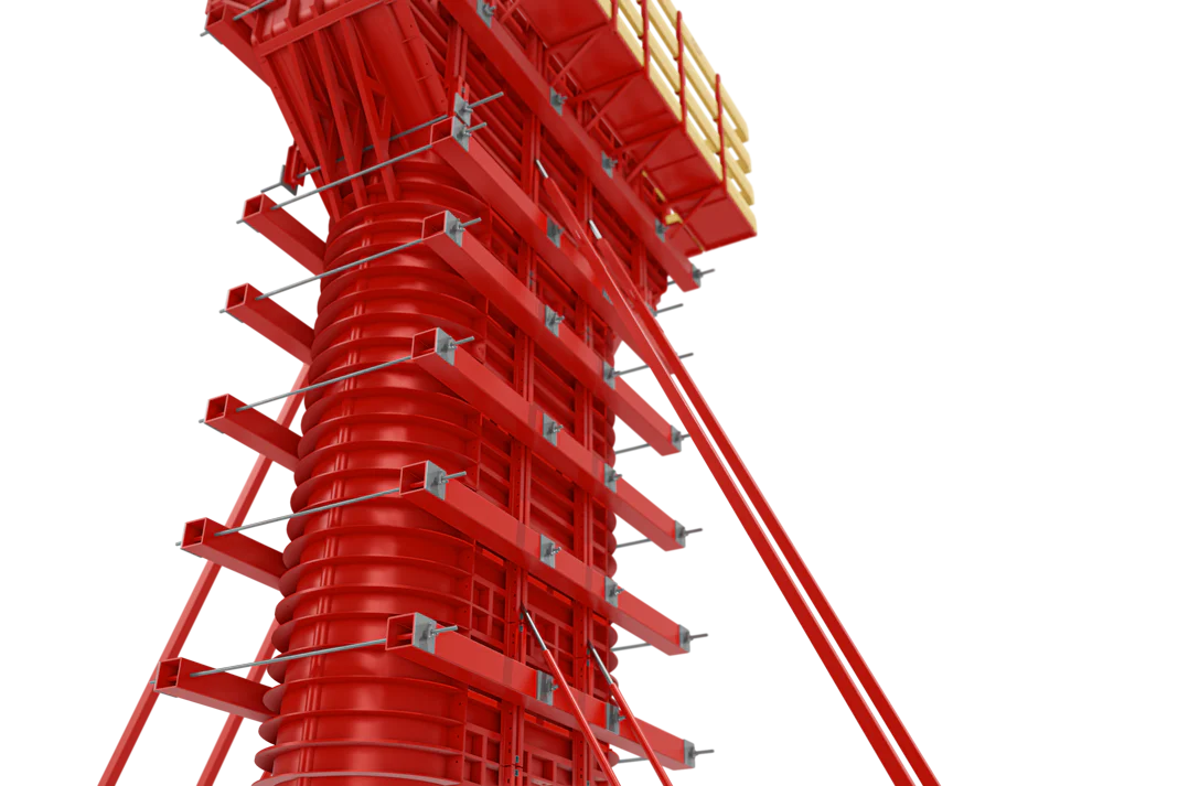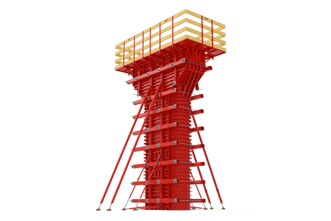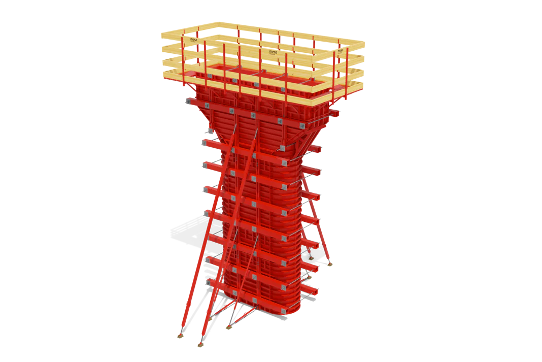 El sistema es diseñado uasdo paneles de acero soportados con vigas horizontales y verticales de acero. El diseño de los encofrados de cepas puede ser con o sin barras de anclaje dependiendo de los requerimientos del proyecto. Dinteles y capiteles de diferentes formas también están disponibles.