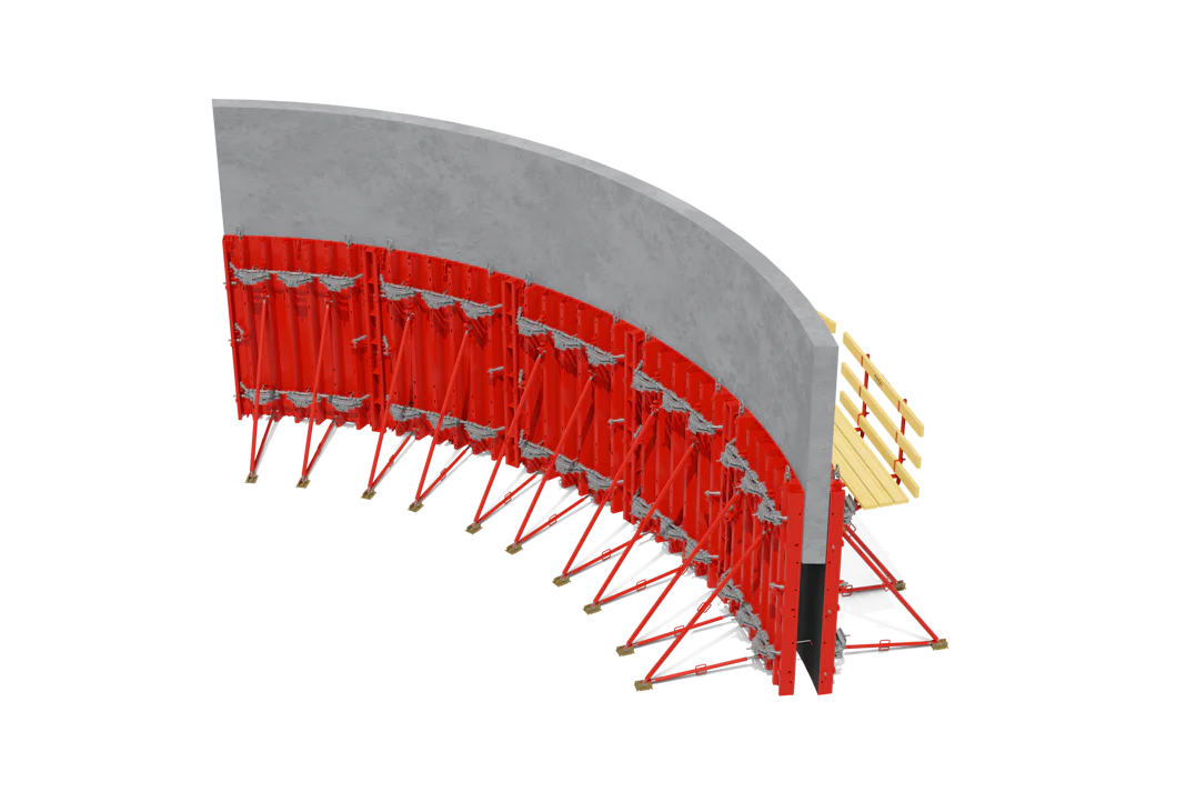 Este sistema de encofrado fue diseñado para tanques y muros circulares y soporta una presión del concreto de hasta 80 kN/m². También puede ser usado para muros rectos. El concreto puede ser vaciado desde una altura de hasta 6.5m.