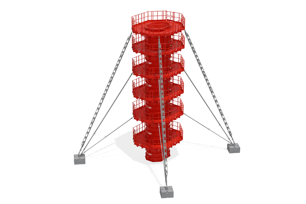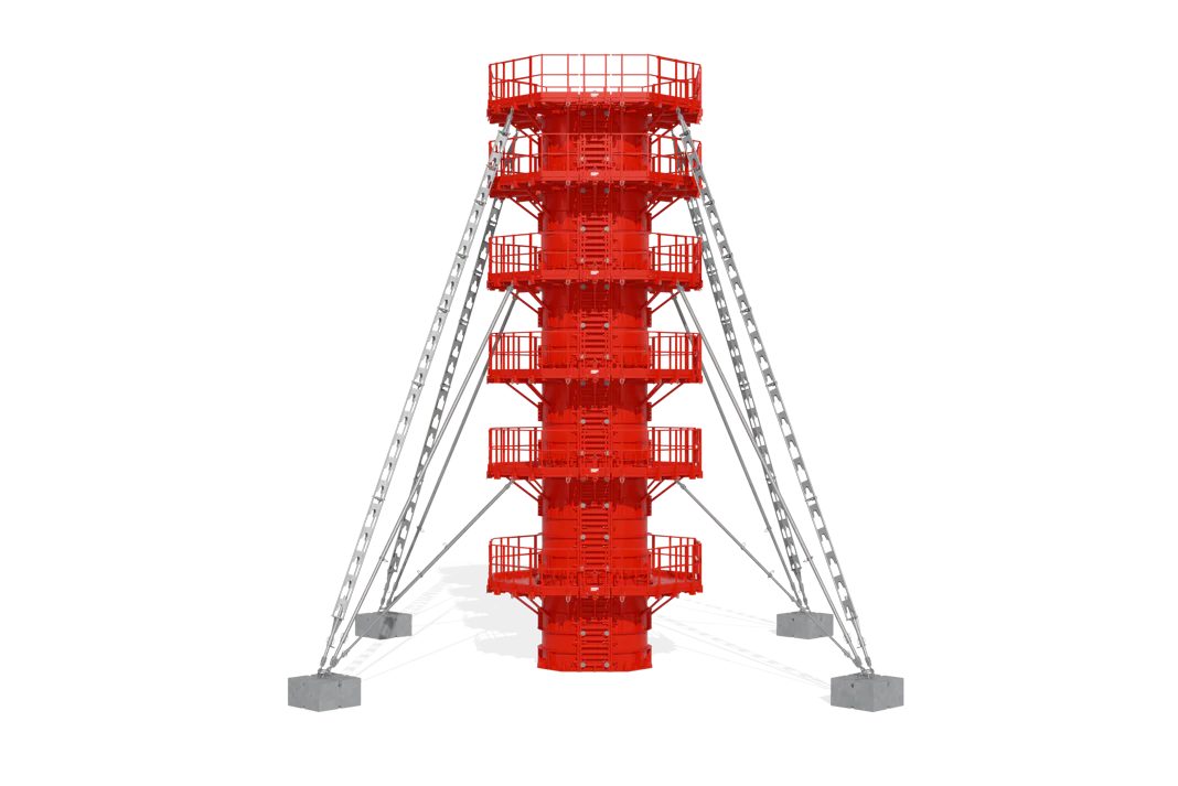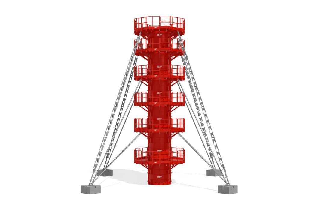 El diseño de los encofrados de pilas se puede realizar con o sin tirantes, según las necesidades del proyecto. También están disponibles cabezas de pila con diferentes formas y geometrías.
