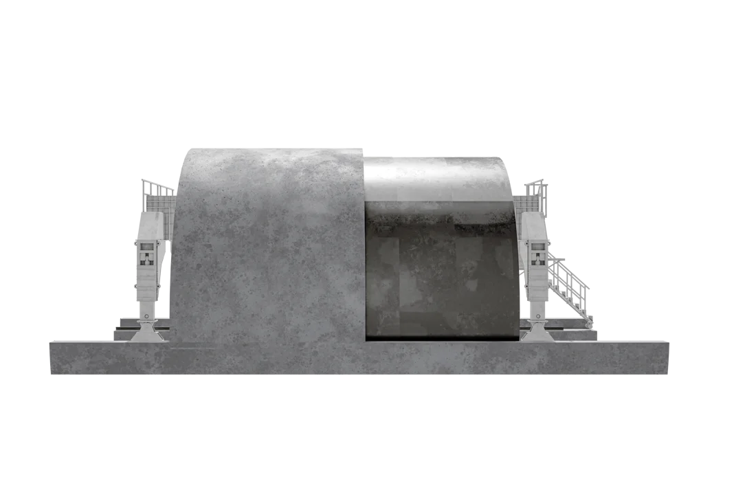 Являет собой систему, пригодную для смещения свода с целью формирования фундамента с двух сторон строения в форме цилиндрической подковы и основания для дорожных перевозок.