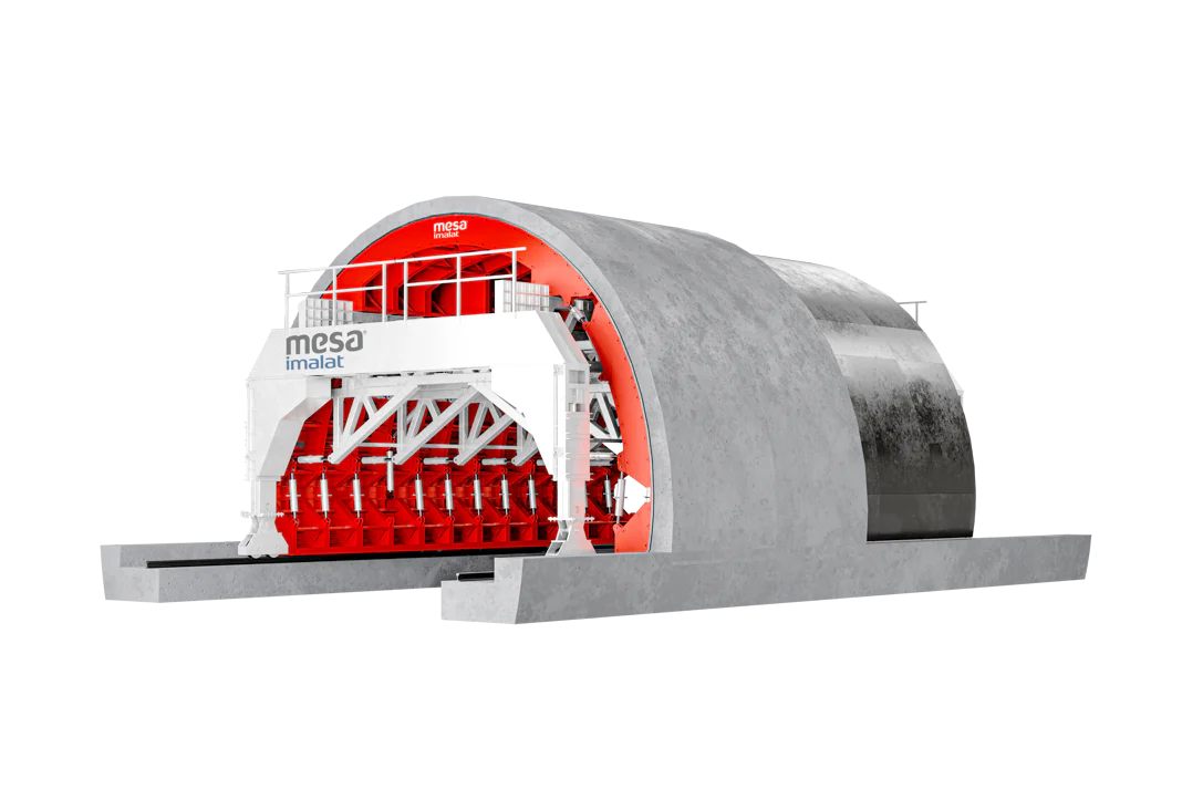 Туннельная опалубка «MESA Nal («подкова») объединяет в себе совокупность опалубочных систем, предназначенных для использования при строительстве туннелей, водопроводов и всех подземных сооружений в цилиндрической форме. Эти опалубочные системы сконструированы с учетом возможности их применения в различных конфигурациях к каждому отдельному элементу системы. Таким образом, независимо от формы и нагрузки, становится возможным сформировать обширный диапазон опалубочных конструкций для снижения себестоимости работ по строительству туннеля.