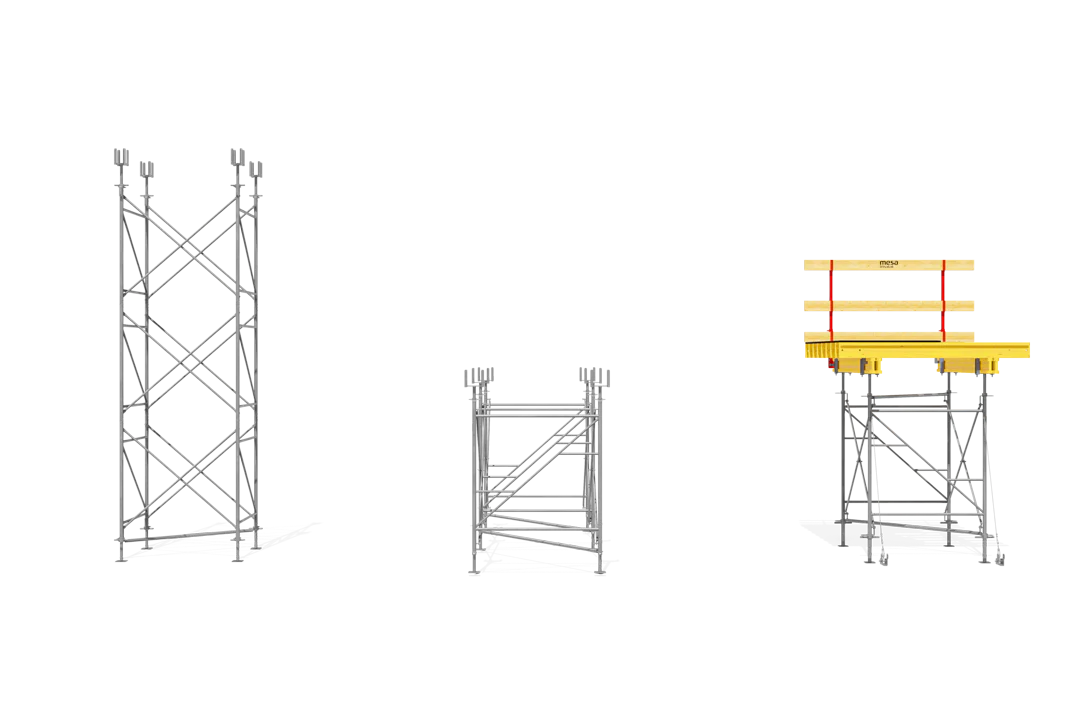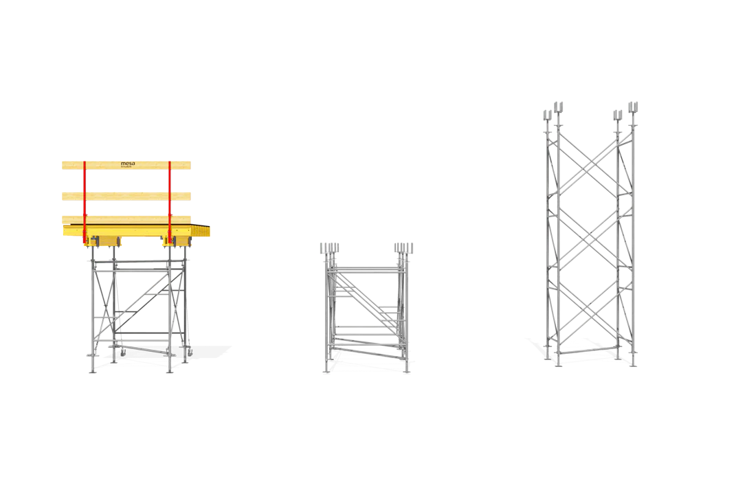 • Возможность установки в качестве несущих силовых башен с различной высотой, а также возможность применения как опалубочной системы типа «стол» различных размеров.