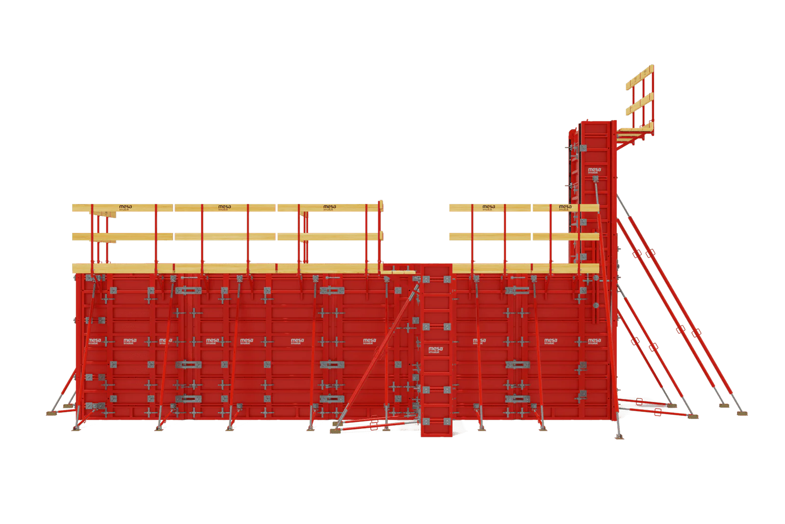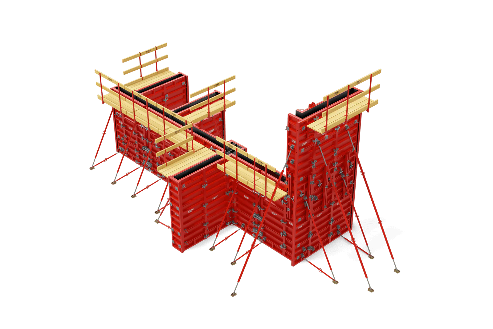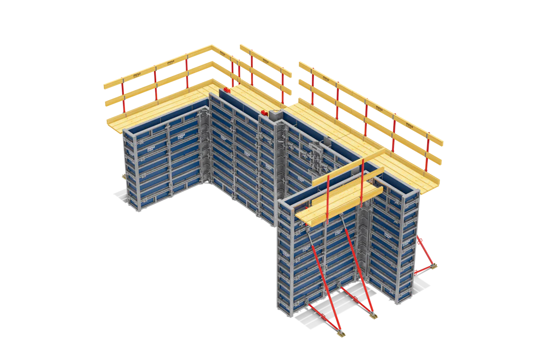 Стеновая опалубка REVOLA — это система, используемая вместе с подъемным краном, при этом максимальное давление бетона на опалубку составляет 100 kN/m2. Благодаря высокой прочности при сжатии происходит сокращение времени непрерывного бетонирования.