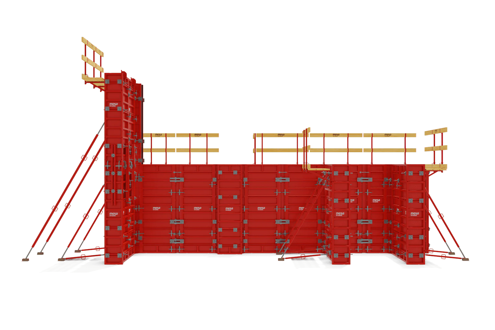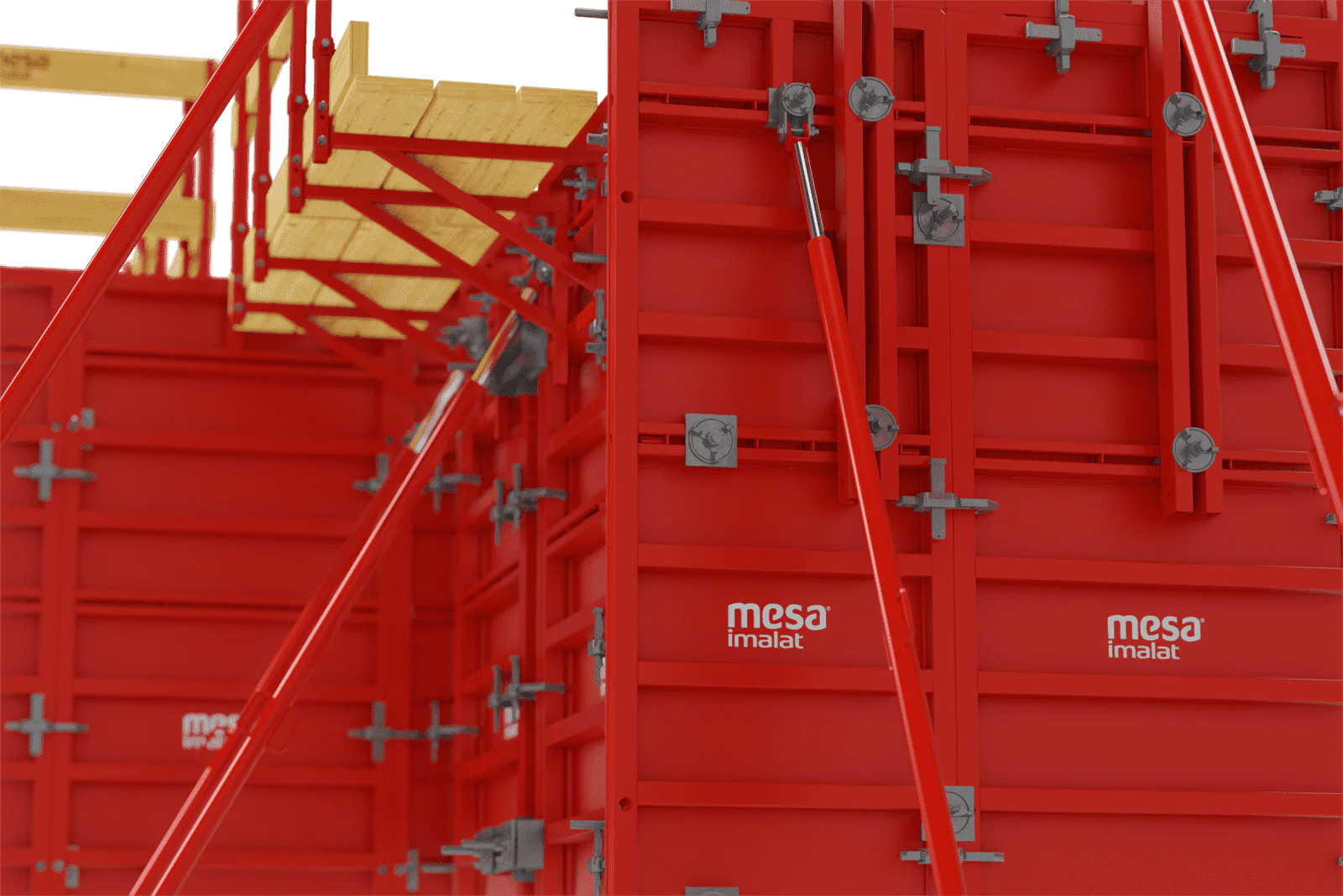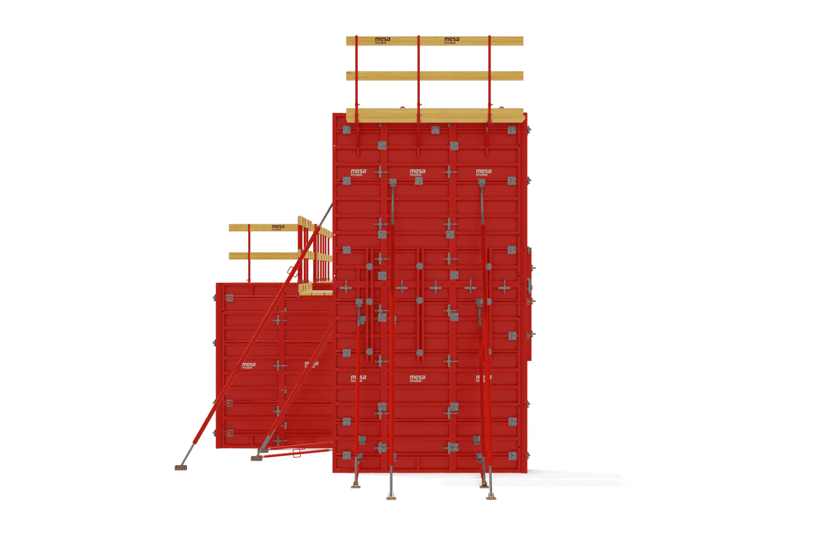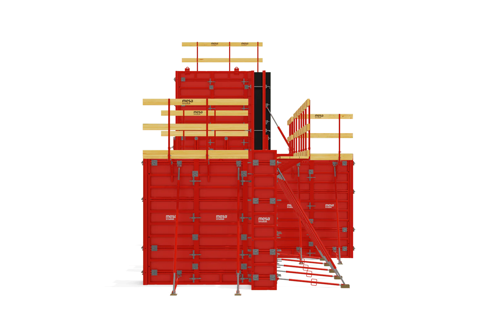 Стеновая опалубка REVOLA — это система, используемая вместе с подъемным краном, при этом максимальное давление бетона на опалубку составляет 100 kN/m2. Благодаря высокой прочности при сжатии происходит сокращение времени непрерывного бетонирования.