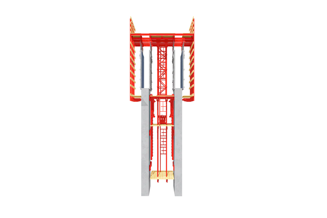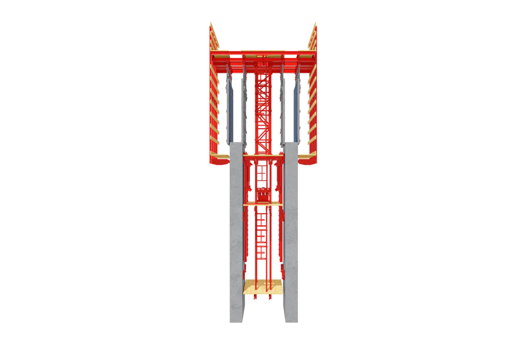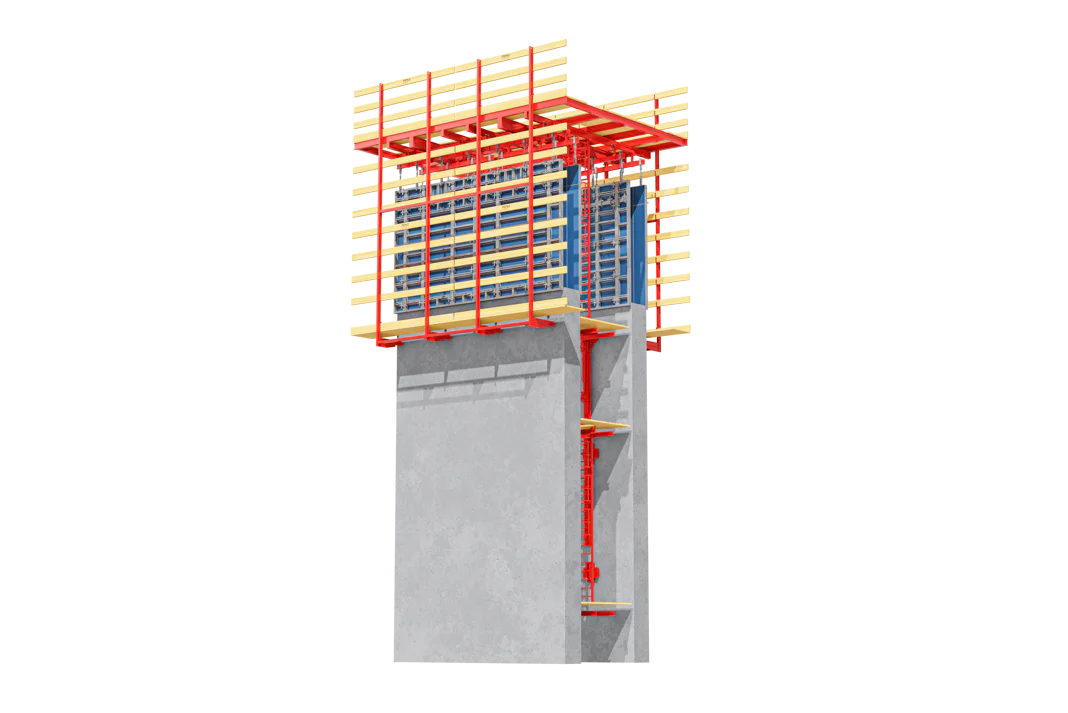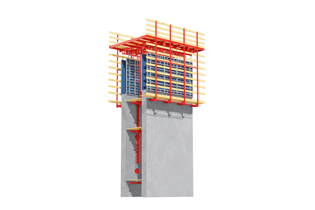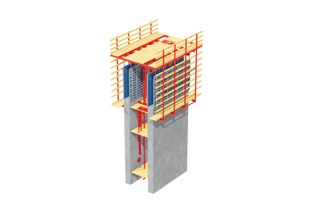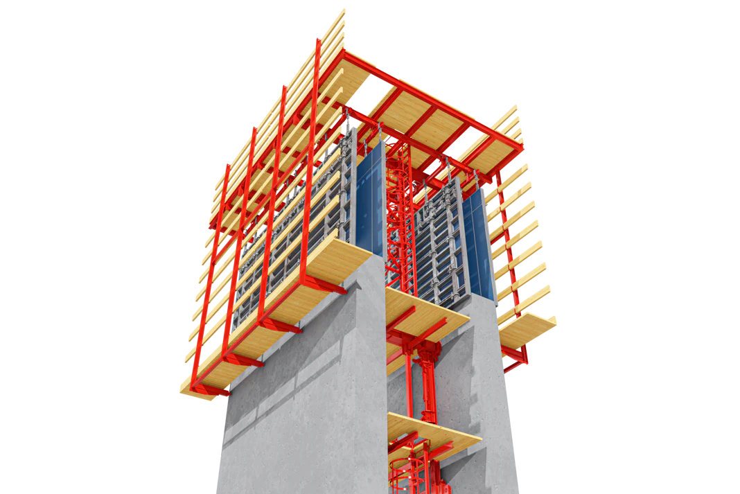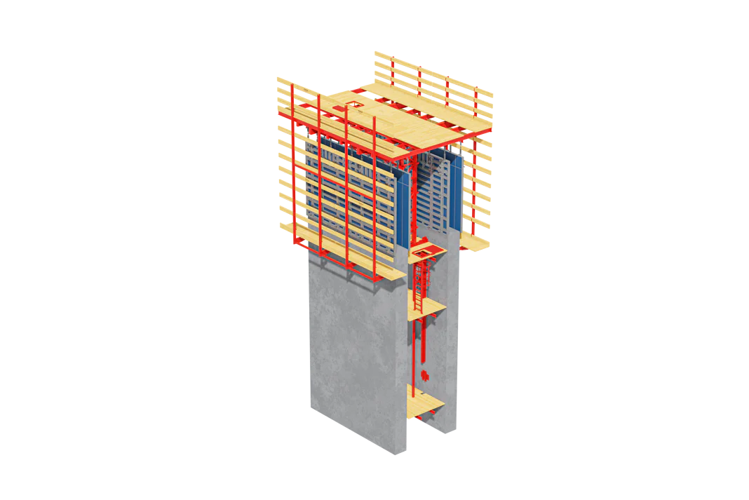 HCP Hidrolik Tırmanır Platform Sistemi, perde betonu imalatı için, özellikle yüksek yapı projelerinde, çalışma platformlarının ve perde kalıplarının bir üst kata vinç yardımı olmaksızın taşınmasında kullanılır.