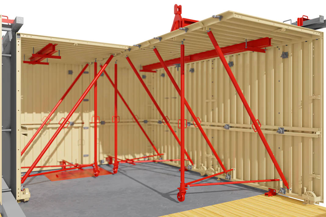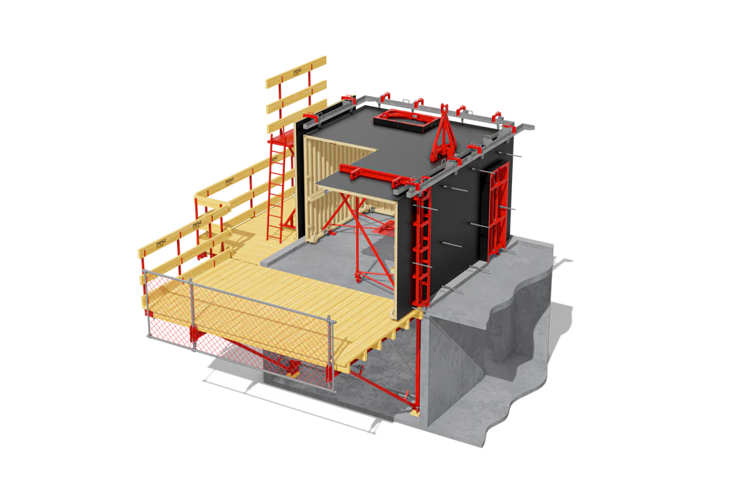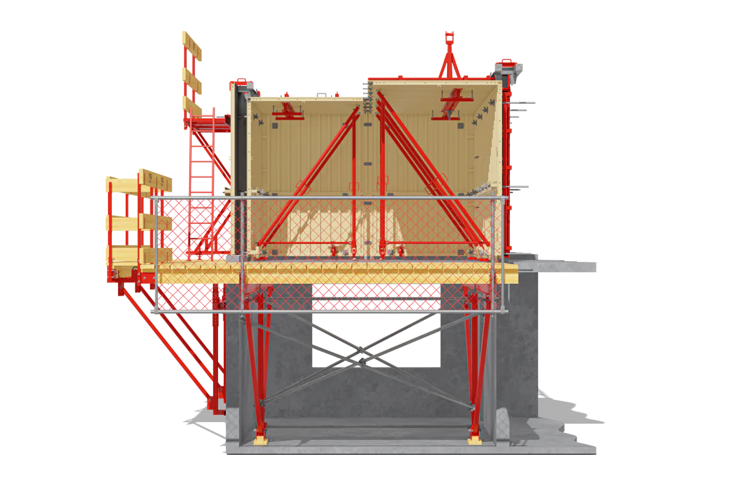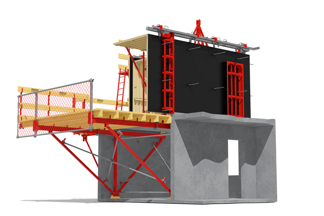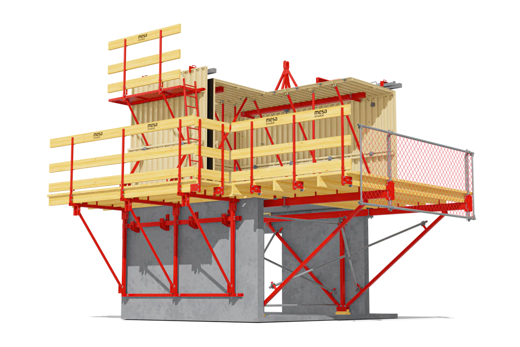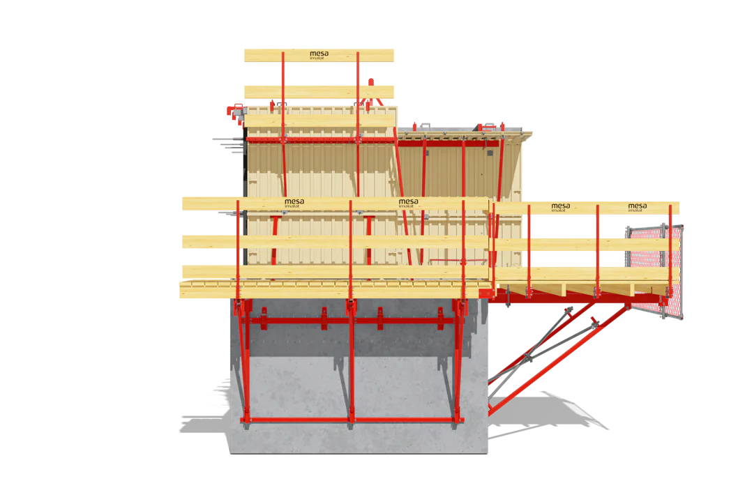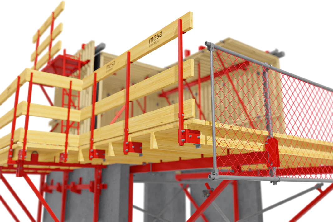 İş Güvenliği: Tünel Kalıp Sisteminin ayrılmaz bir parçası olan ve tüm kat çevresine ve boşluklara yerleştirilen iskeleler, yüksek iş güvenliği sağlar.